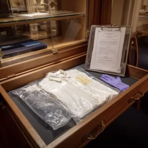 Morrow obtained a warrant to search the now-abandoned Langford property. In a locked shed, investigators found a cedar trunk filled with “trophies”: a nun’s veil, a child’s sash, a choir robe with the name “R. Cummings” stitched inside. Luminol testing on Felicia’s robe revealed traces of blood inside the hem, consistent with blunt force trauma.