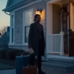 She steps into the shade, squinting toward her front steps like she’s expecting a package or a neighbor with a question. A man in a reflective vest walks into frame from the right. He carries a clipboard and moves with the steady confidence of someone on official business, the kind of posture people instinctively trust. The camera shows him climbing the porch, speaking to Danielle, and after a brief moment she steps aside. He walks in.