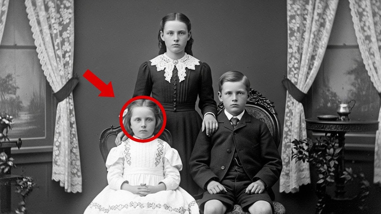 At first glance, it was nothing more than a typical Victorian family portrait: three well-dressed children arranged with solemn formality, the eldest sister standing protectively behind her younger siblings, the boy seated stiffly in the middle, and the youngest girl, little Emma, posed sweetly at the side with her hands folded neatly in her lap. The backdrop — lace curtains, polished furniture, and patterned wallpaper — hinted at a comfortable farming family somewhere in Cedar County, Iowa.